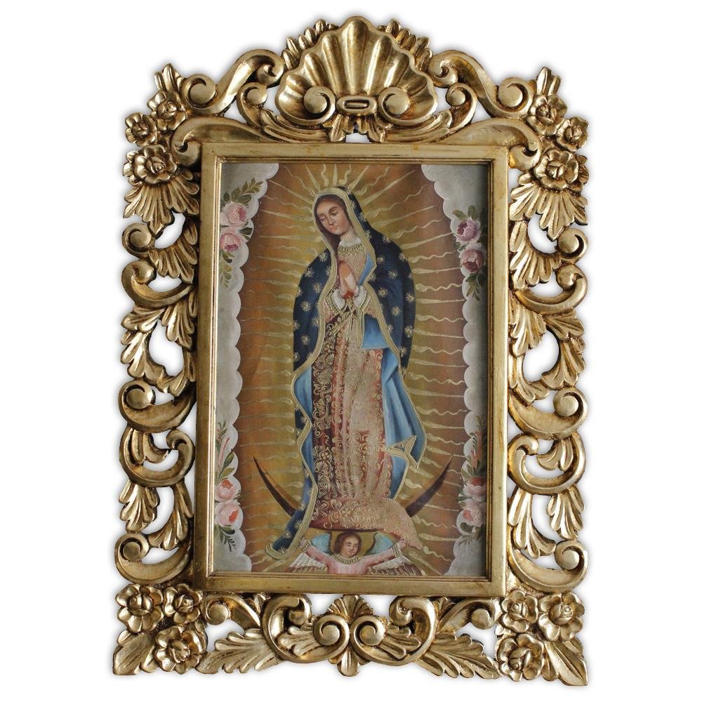Marco de madera de pino, con talla en forma de rosas, Acabados en hoja de oro/plata, así como en rustico con cera o al natural.