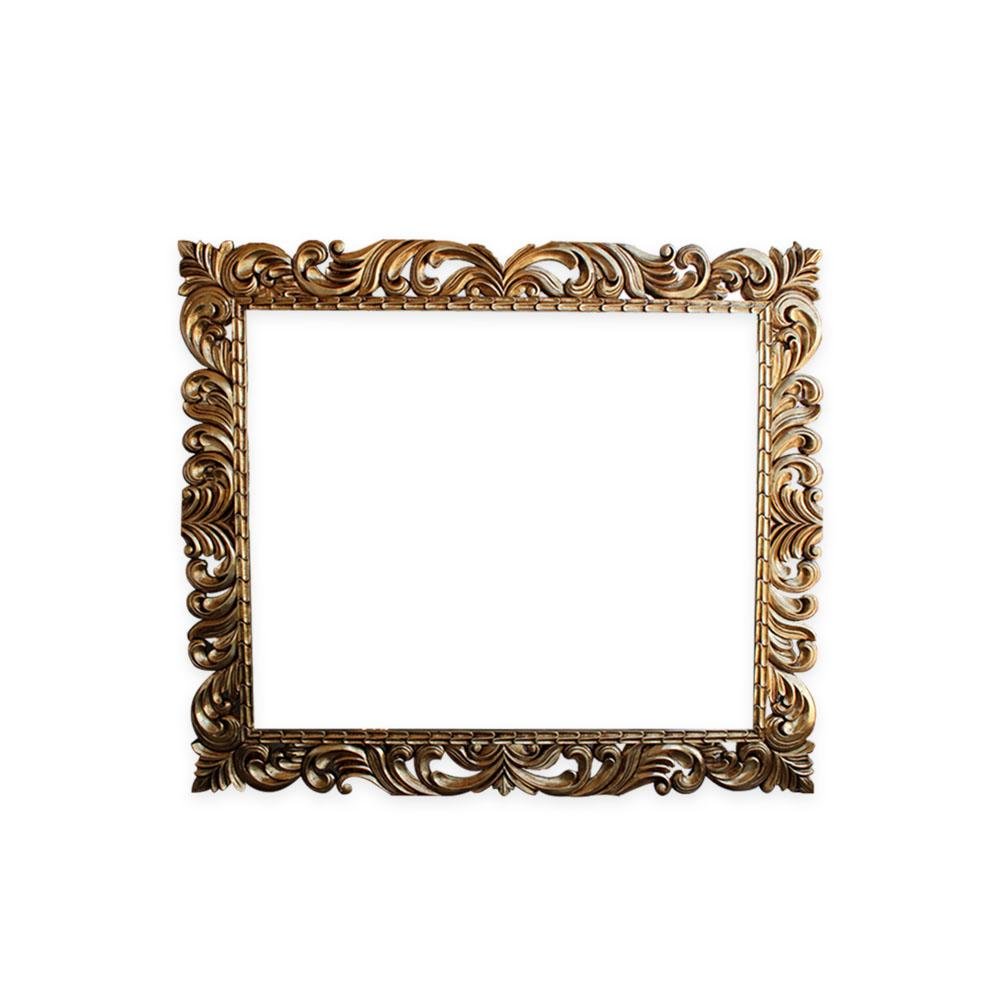 Marco de madera de pino, rectangular, Acabados en hoja de oro/plata, así como en rustico con cera o al natural.