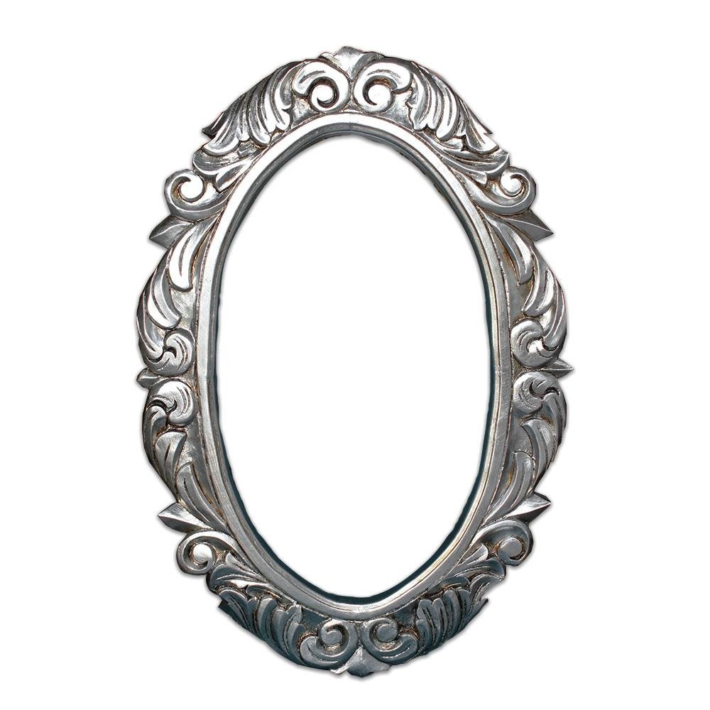 Marco de madera de pino en forma ovalada con talla, Acabados en hoja de oro/plata, así como en rústico con cera o al natural.