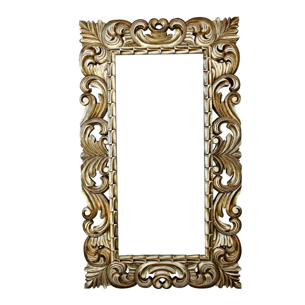 Marco de madera de pino, rectangular, de 2.30m de alto, talla resaltada. Acabados en hoja de oro/plata, asi como en rustico con cera o al natural.